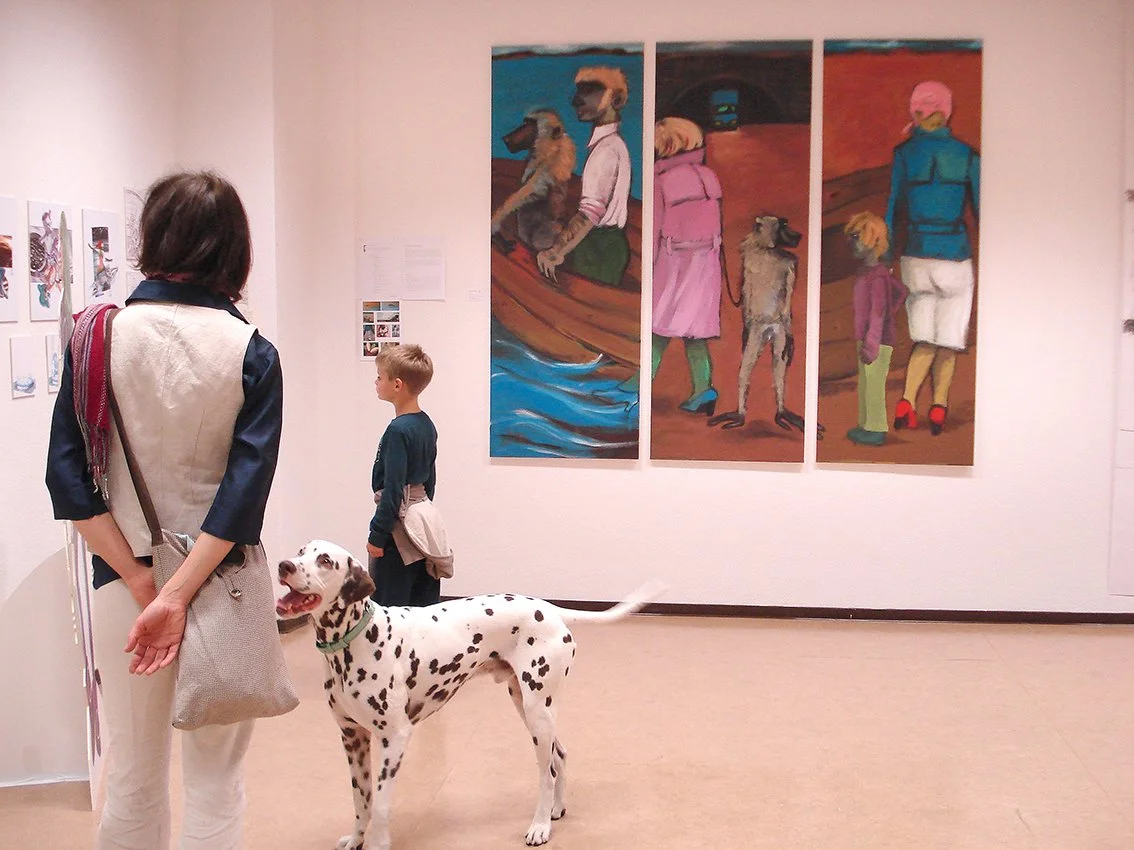 Als die Tiere- und Menschenpaare sich vor den biblischen Sintfluten auf die Arche des Noah flüchteten und ziellos im Gewittersturm auf dem Ozeane seekrank umherschlingerten und irgendwann auf dem Berg Ararat strandeten und von dort aus die Welt neu besiedelten… – … als die Tiere und Menschen sich vor den medialen Bilderfluten in die fränkischen Wälder flüchteten und ziellos umherirrten, fanden sie eine Heimstatt bei Sabine Hippeli im Atelier, die später mit ihnen im Gepäckwagen in Berlin strandete und die nun von hier aus neu in die Welt hinausgehen: Paare, die Pläne und Zukunft haben, Elche, die Bratwürste lieben, Südseematronen, Blumenkelche und Schlinggewächse, auch Paare, die nur herumstehen dafür aber wettlaufenden Pferden und Hasen zuschauen, hungrige Tüpfelhyänen und sanfte Rehluder, Tasmanische Teufel, rassige Hunde und eilige Straußenvögel und Hoppe-Hoppe-Reiter: Vorwärts zu neuer Primamalerei. Und so kommt es, dass es in Berlin wieder Bilder für die schönere Zukunft gibt, wenn die unselige unsägliche Bilderflut verebbt sein wird. Prima Malerei.